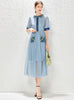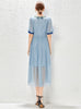Retro Blue Bubble Sleeve Lace Embroidery Stitching Dress
