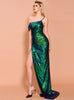Sequin Slit Irregular Suspender Dress Evening Dress