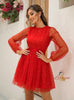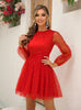 Sequins Lantern Sleeve Mesh Dress