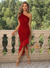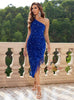 Sexy One-shoulder Fringed Sequined Tight Dress