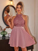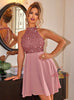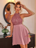 Sexy Sequined Stitching Backless Dress