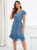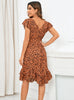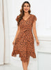 Slim-fit V-neck Short Sleeve Leopard Print Irregular Dress