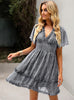 Summer Lotus Leaf Sleeve V-neck Sexy Floral Dress