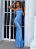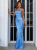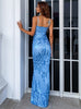 Thin Shoulder Strap Blue Sleeveless Long Dress