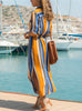 Turn Down Collar Office Ladies Stripe Shirt Dress