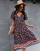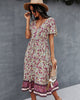 V-neck Short Sleeve Bohemian Printed Dress