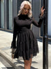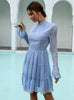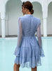 Wave Chiffon Long Sleeve Dress Round Neck Short Skirt