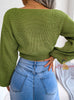 Bow V-neck Lantern Sleeve Navel Sweater