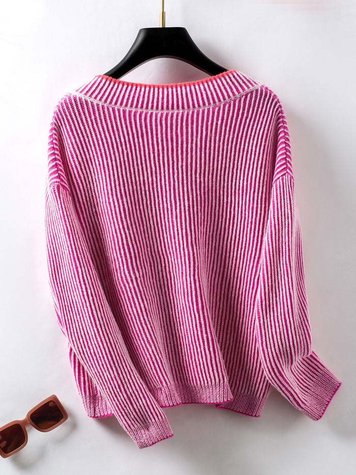 Casual Pullover Loose V-neck Striped Sweater