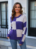 Casual Round Neck Plaid Sweater