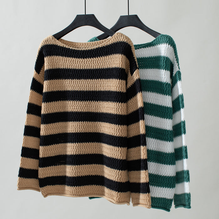 Contrast Striped Casual Loose Sweater