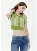 Flower Button Lapel Plaid Short Sleeve Sweater