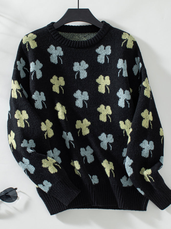 Four-leaf Print Jacquard Loose Long-sleeved Sweater