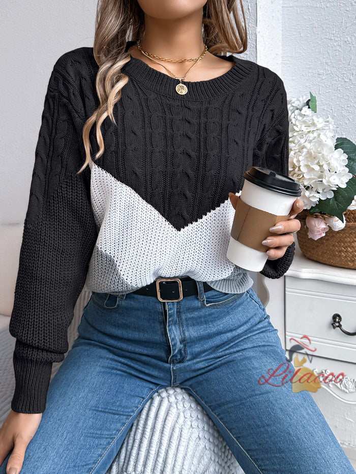 Leisure Color Matching Twist Lantern Sleeve Sweater