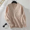 Loose-fitting Retro Twist V-neck Long Sleeve Sweater