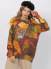 Maple Leaf Tiger Head Print Round Neck Sweater