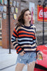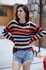 Rainbow Striped Round Neck Long Sleeve Sweater