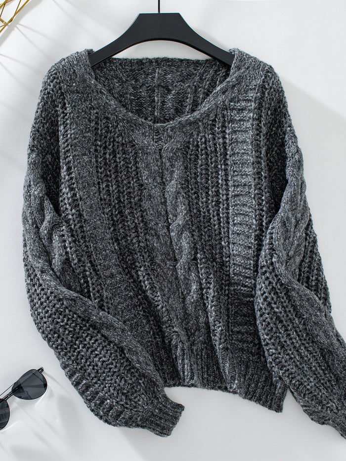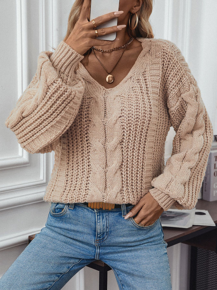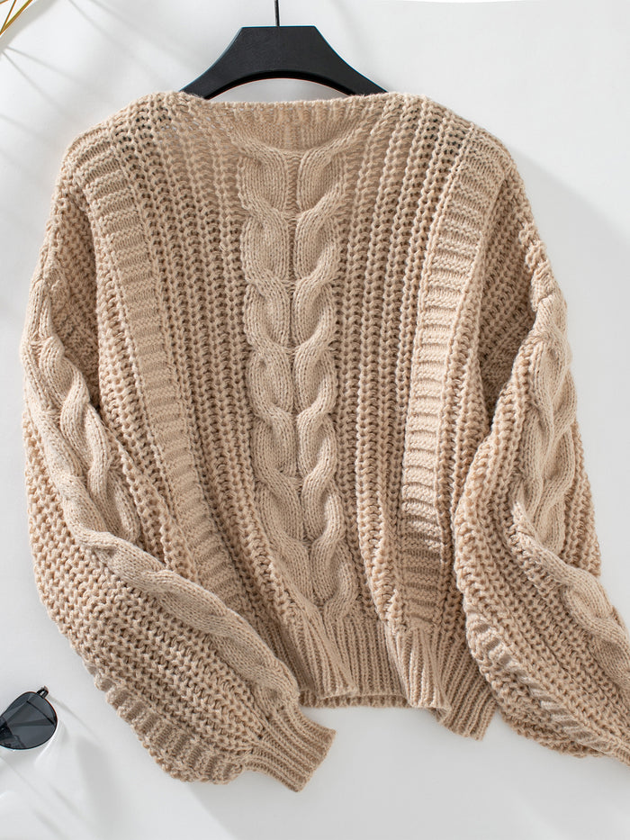 Solid Color Retro Loose Lantern Sleeve Kink Sweater