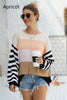 Spliced Loose Round Neck Striped Sweater