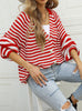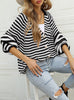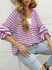 Striped Loose Single-breasted V-neck Sweater