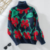Three-dimensional Flocking Flower Pattern Lapel Sweater