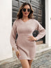 V-Neck Long Sleeve High Waist Sweater Dress