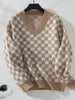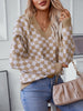 V-neck Pullover Plaid Loose Long Sleeve Sweater