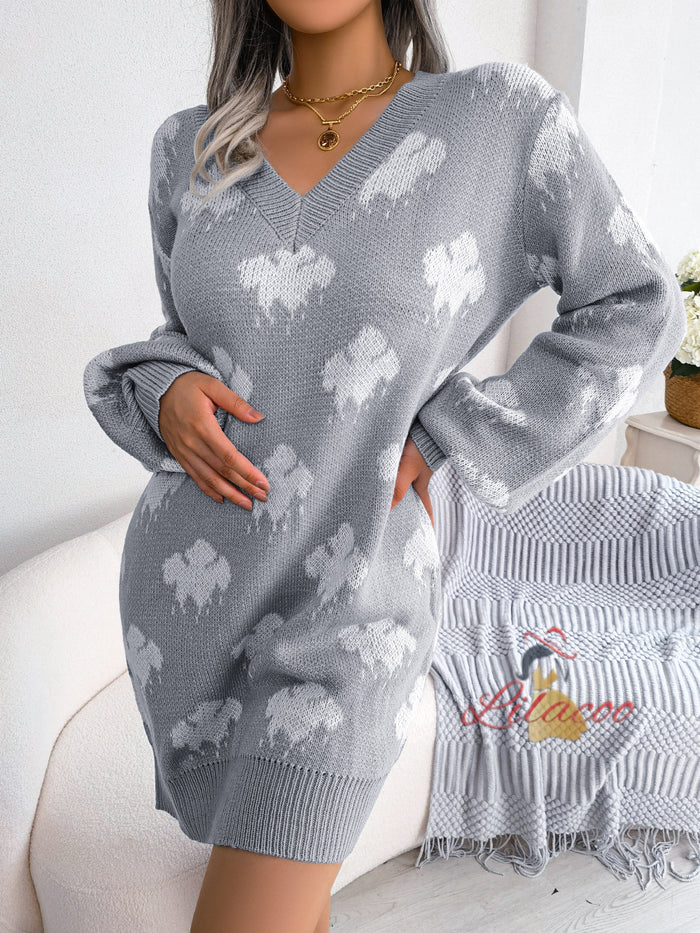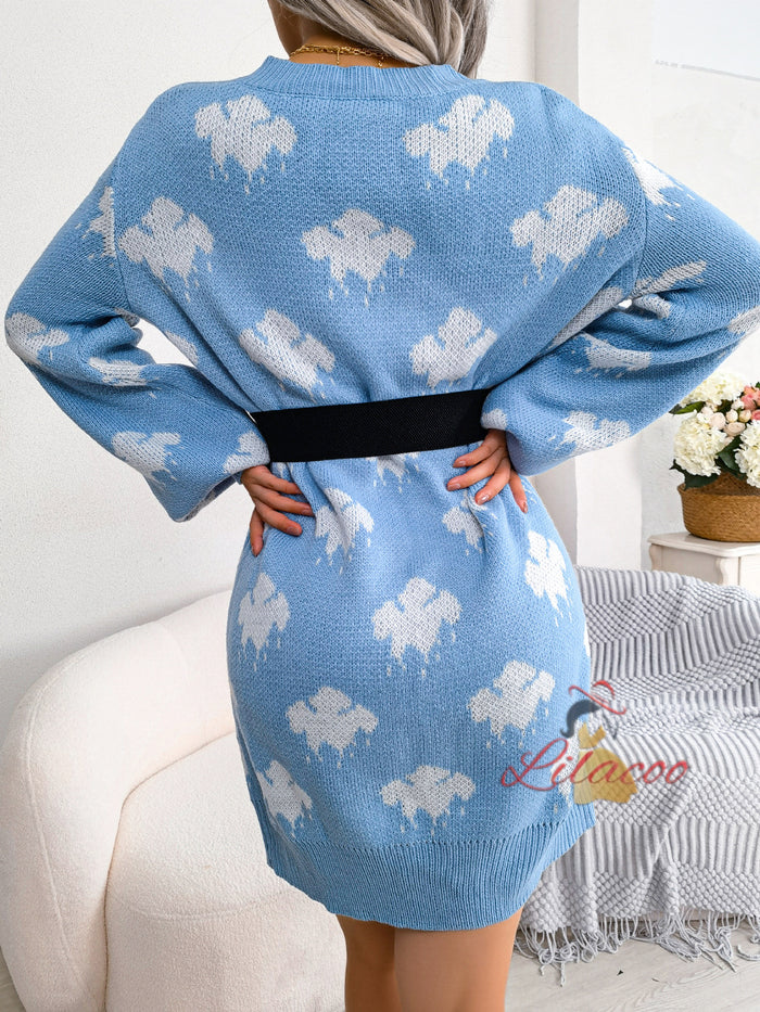 Contrasting Clouds Lantern Sleeve Sweater Dress