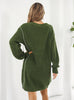 Drawstring V-neck Long Sleeve Sweater Dress