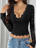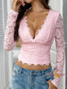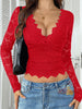 Sexy Deep V Openwork Lace Top