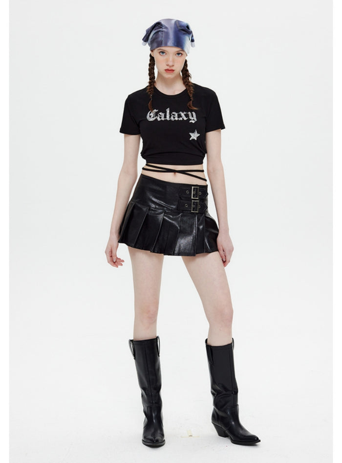 Beyond the ordinary, this bejeweled 'Galaxy' t-shirt captures the mystique of a starlit night. With its captivating sequin embellishments, it brings the wonders of the cosmos close to heart. The fitted silhouette and stylish crop invite you to pair it with layers or wear it boldly on its own, perfect for both day and night endeavors. Whether you're out exploring the city or gazing at the stars, this t-shirt is your cosmic companion.