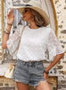Short Sleeve Chiffon Shirt Round Neck Jacquard Top