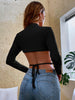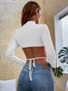 Slim Fit Short Knitted T-shirt Long Sleeve Top