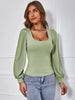 Casual Bubble Sleeve Knitted Square Collar T-shirt