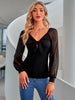 Casual Knotted V-neck Slim Knit Top