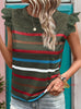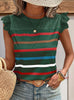 Casual Lace Lotus Leaf Sleeve Striped T-shirt