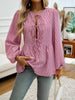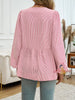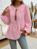 Casual Loose Striped Lantern Sleeve Lace-up Shirt