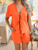 Casual Short Sleeve Lace-up Short Pants Suit