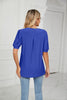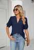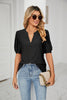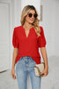 Casual V-neck Hollow Bubble Sleeve Loose T-shirt