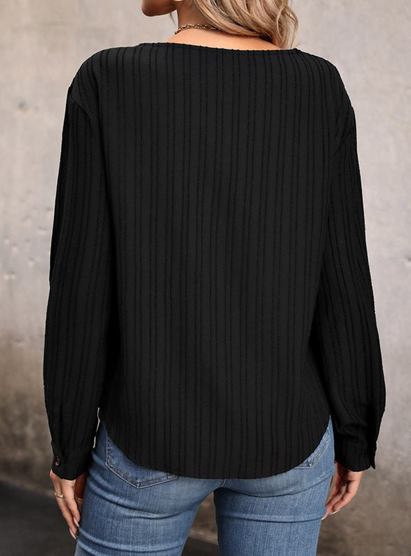 Contrast Stitching V-neck Long Sleeve Button Top