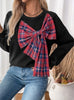 Crew Neck Plaid Stitching Bow Thick Top