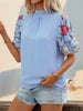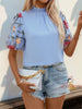 Embroidered Gauze Spliced Lantern Sleeve Shirt