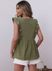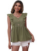 Folded Cotton and Linen Top V-neck Button T-shirt