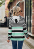 Geometric Stripe Printed Long Sleeve Hoodie Top