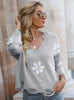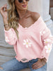 Hole Long Sleeve Loose Small Flower V-neck Sweater