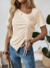 Irregular Drawstring V-neck Short-sleeved Shirt