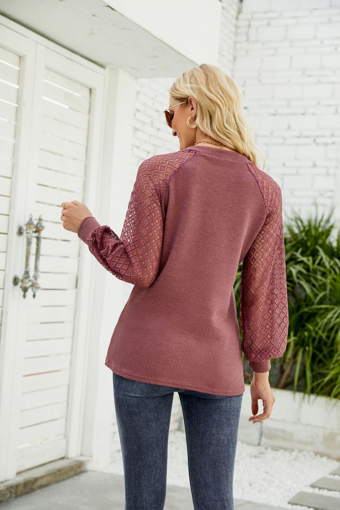 Lace Stitching Long Sleeve V-neck T-shirt