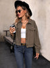 Lapel Long Sleeve Plaid Short Coat