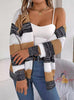 Leisure Contrast Striped Lantern Sleeve Sweater Coat