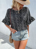 Leopard Print Bat Lotus Leaf Sleeve Print Shirt